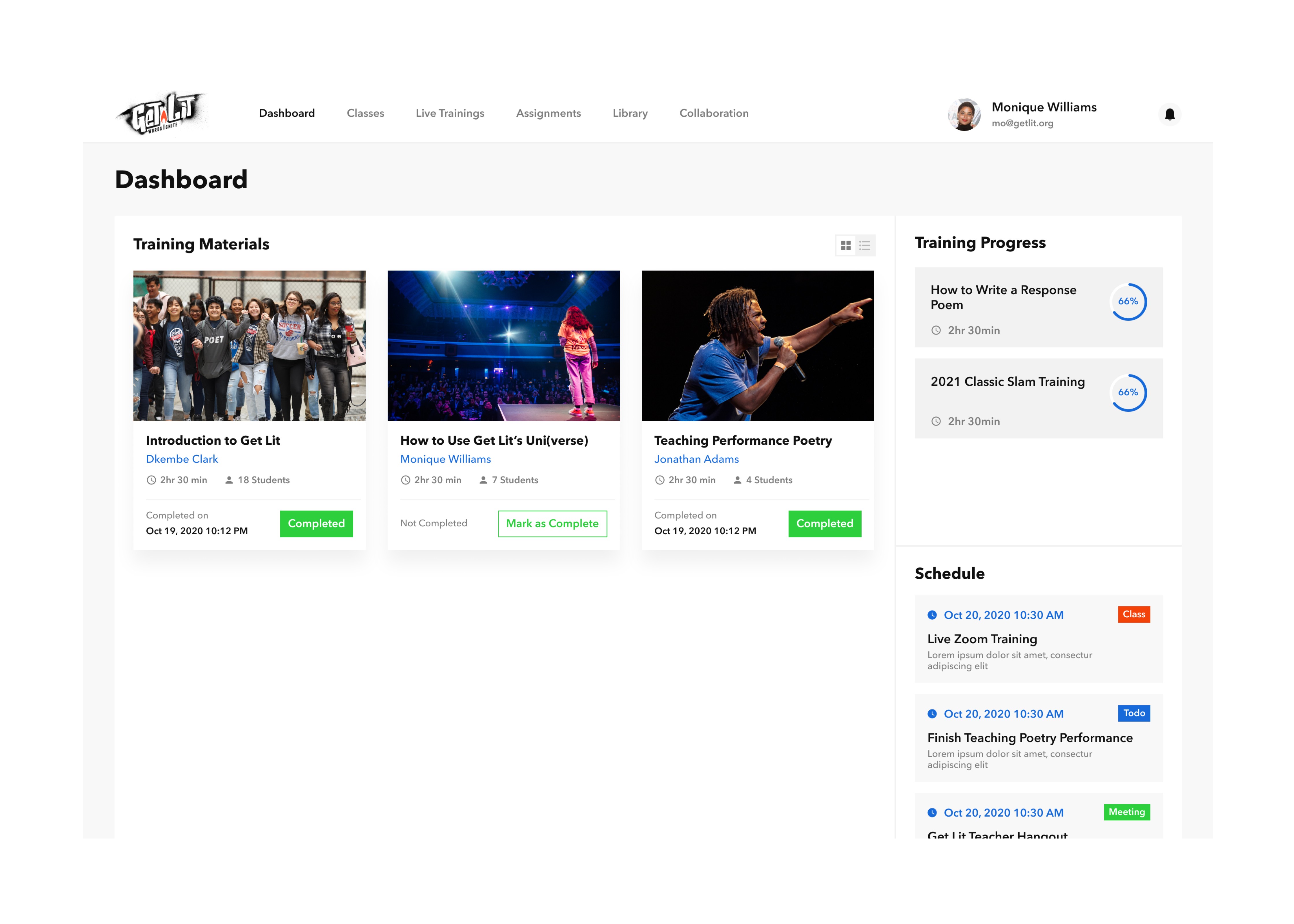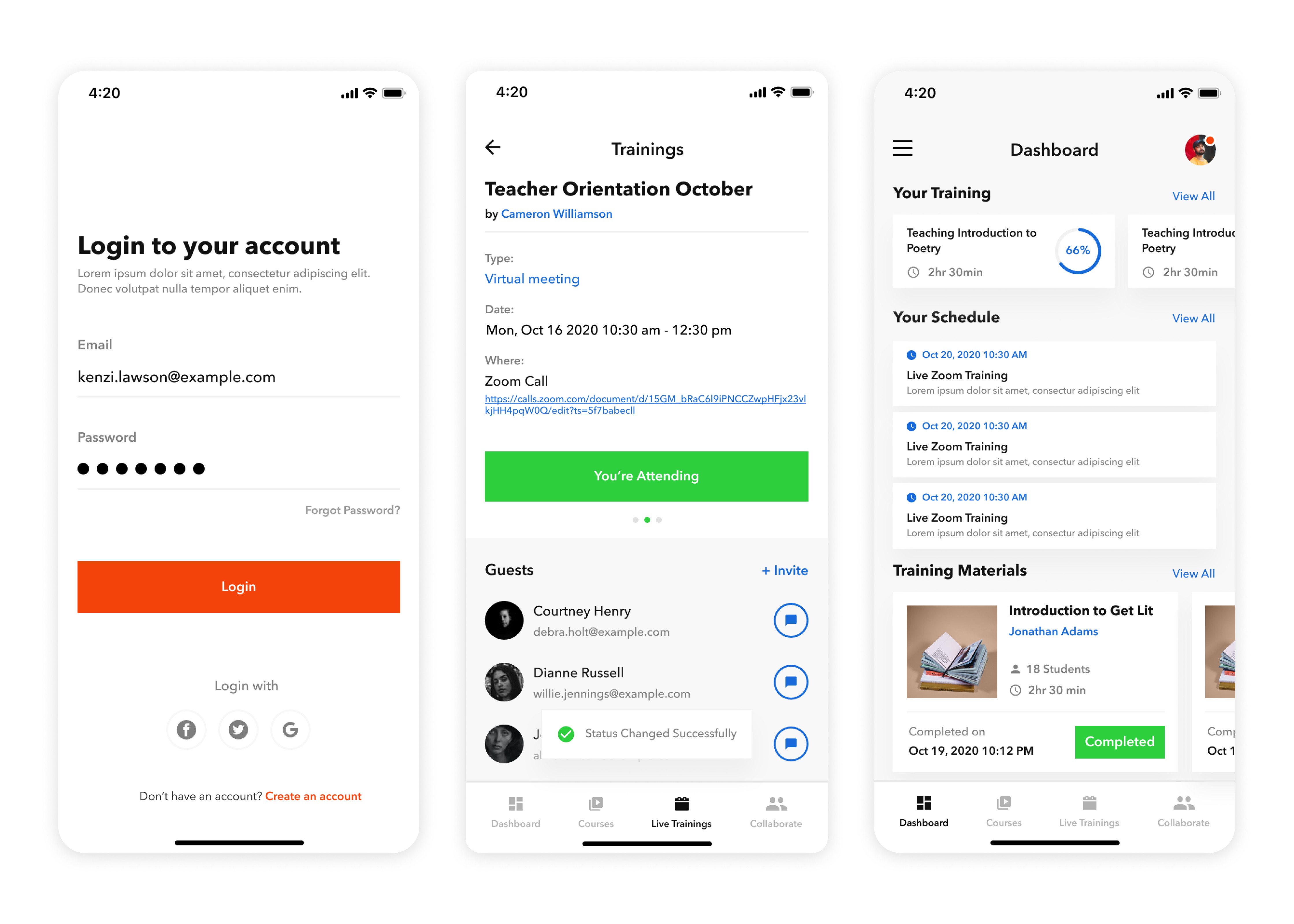 User flows were structured carefully to reduce unnecessary steps and guide users through onboarding, training, class management, and collaboration. The teacher training experience included clear scheduling, progress visibility, and access to both live and recorded sessions.