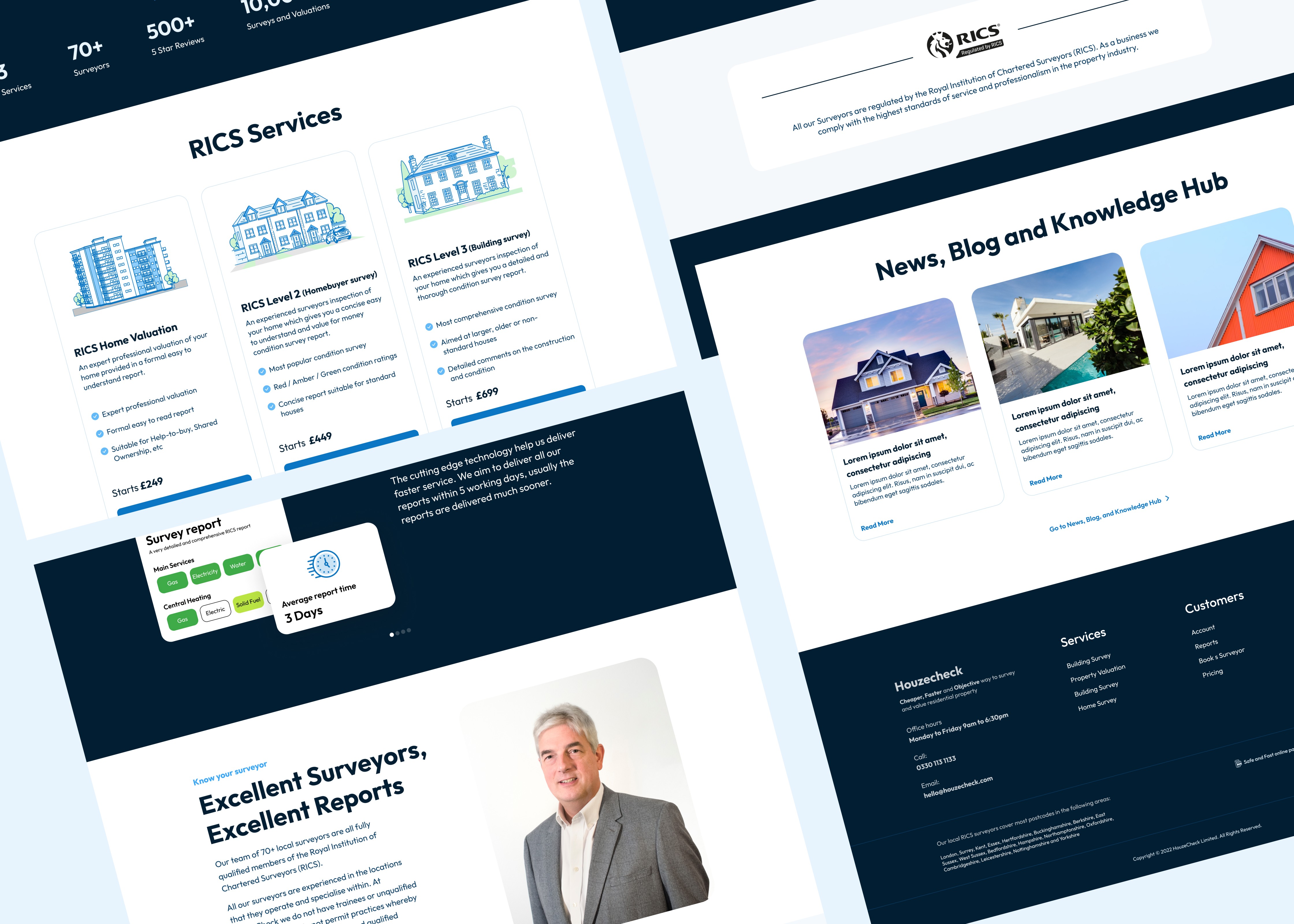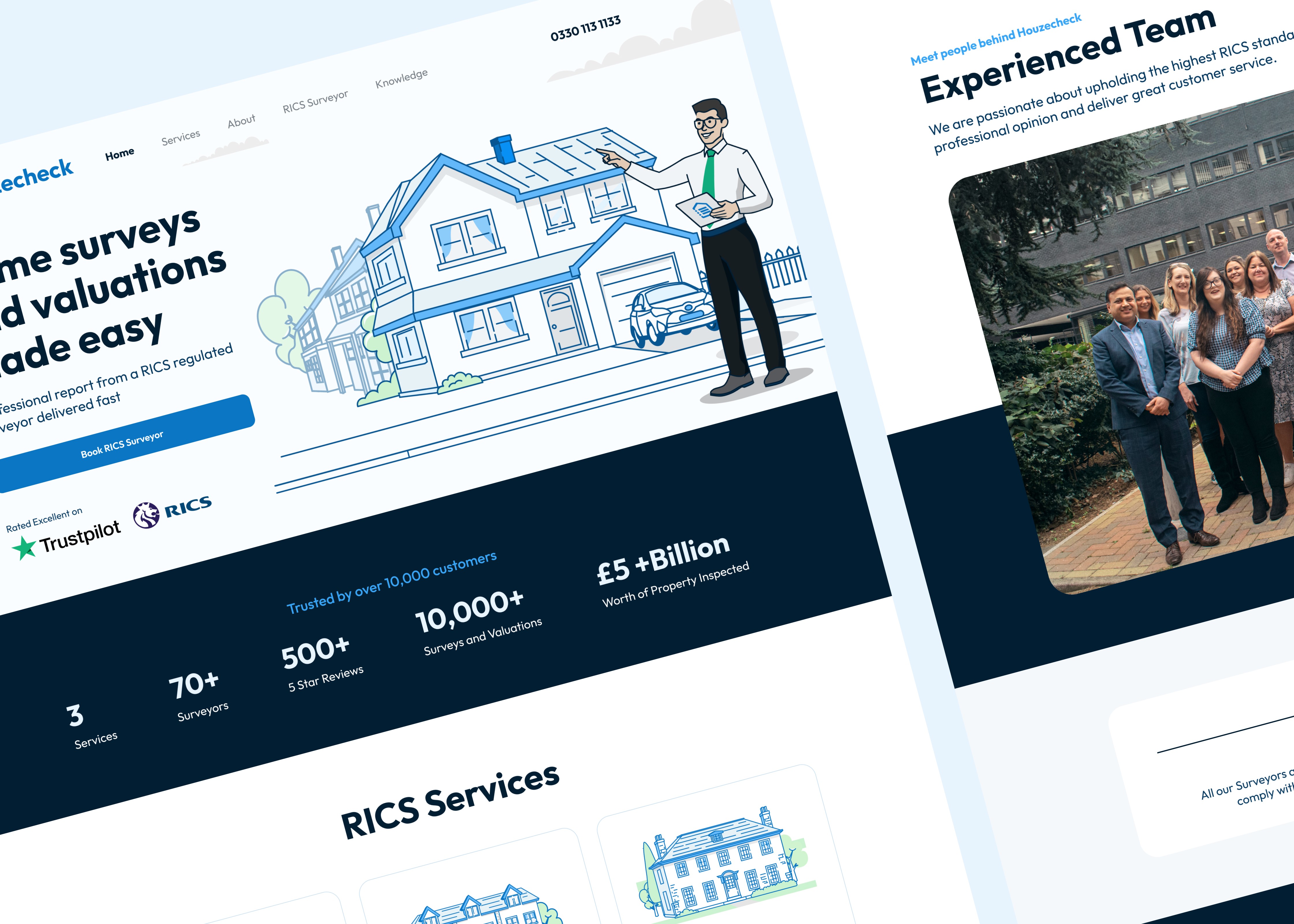 The homepage was restructured to clearly explain services, highlight expertise, and communicate the value of property surveys as an investment. Trust indicators and professional credentials were emphasized to increase confidence.