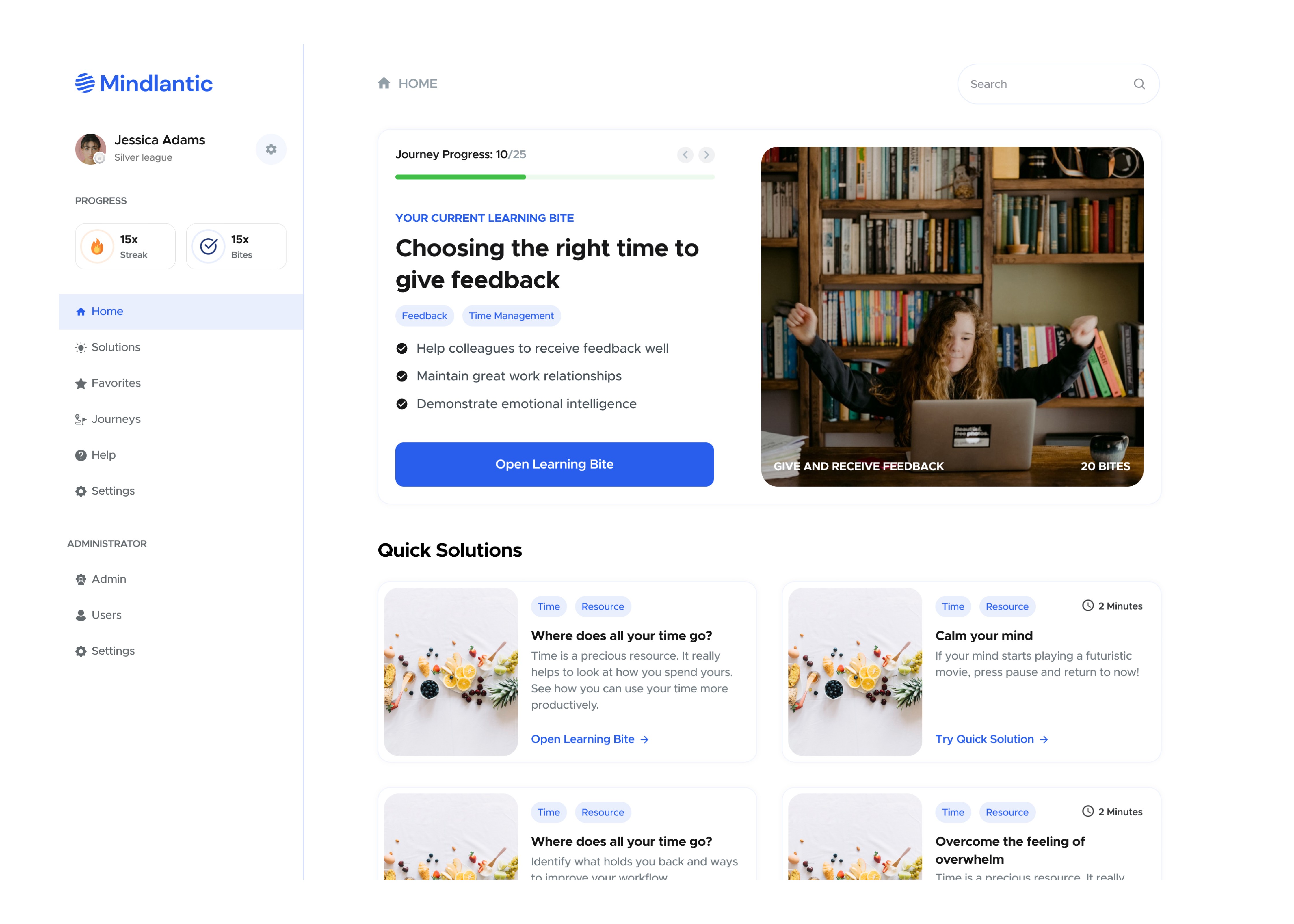 The experience was designed to support short, focused learning sessions that are easy to start and complete.