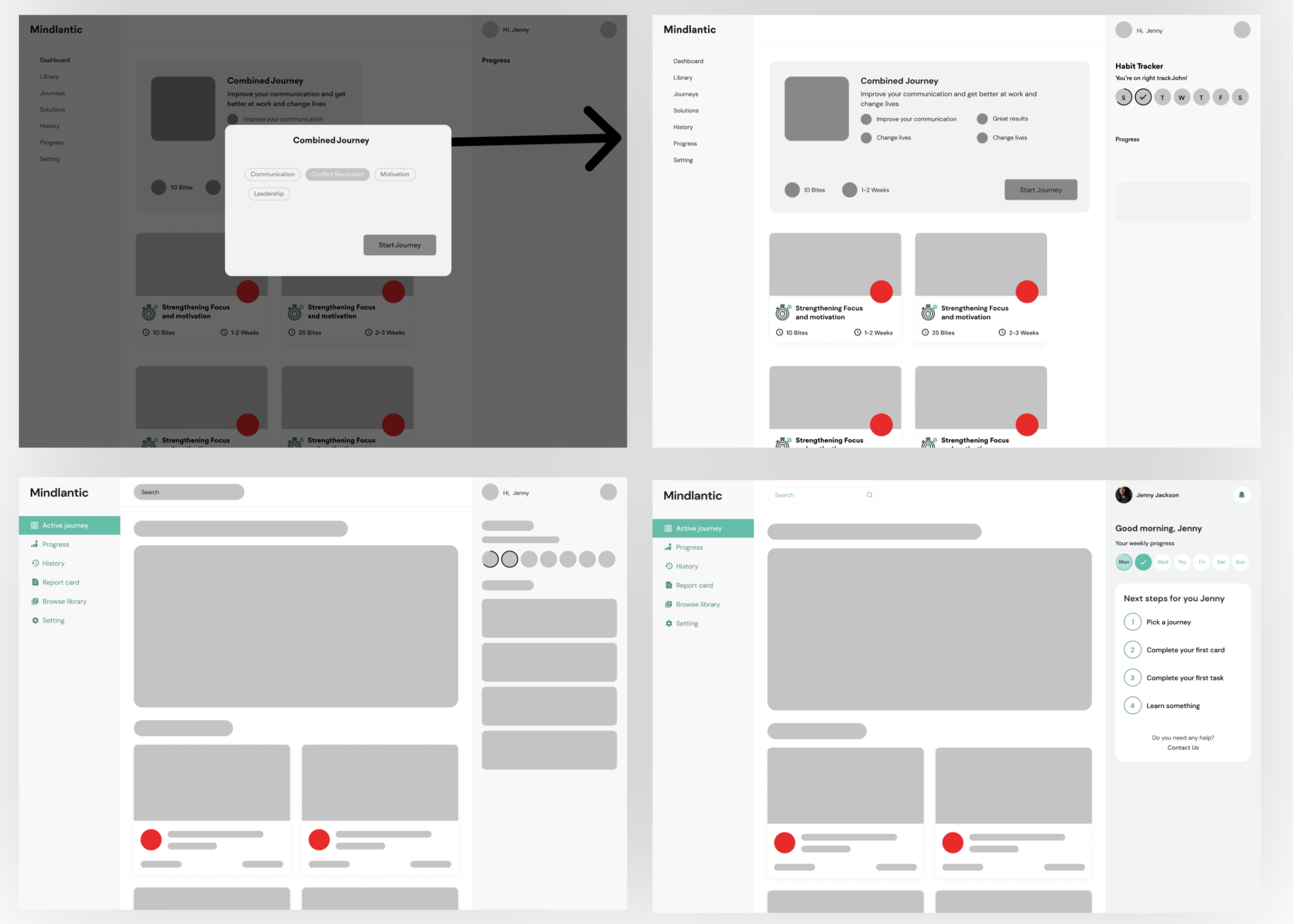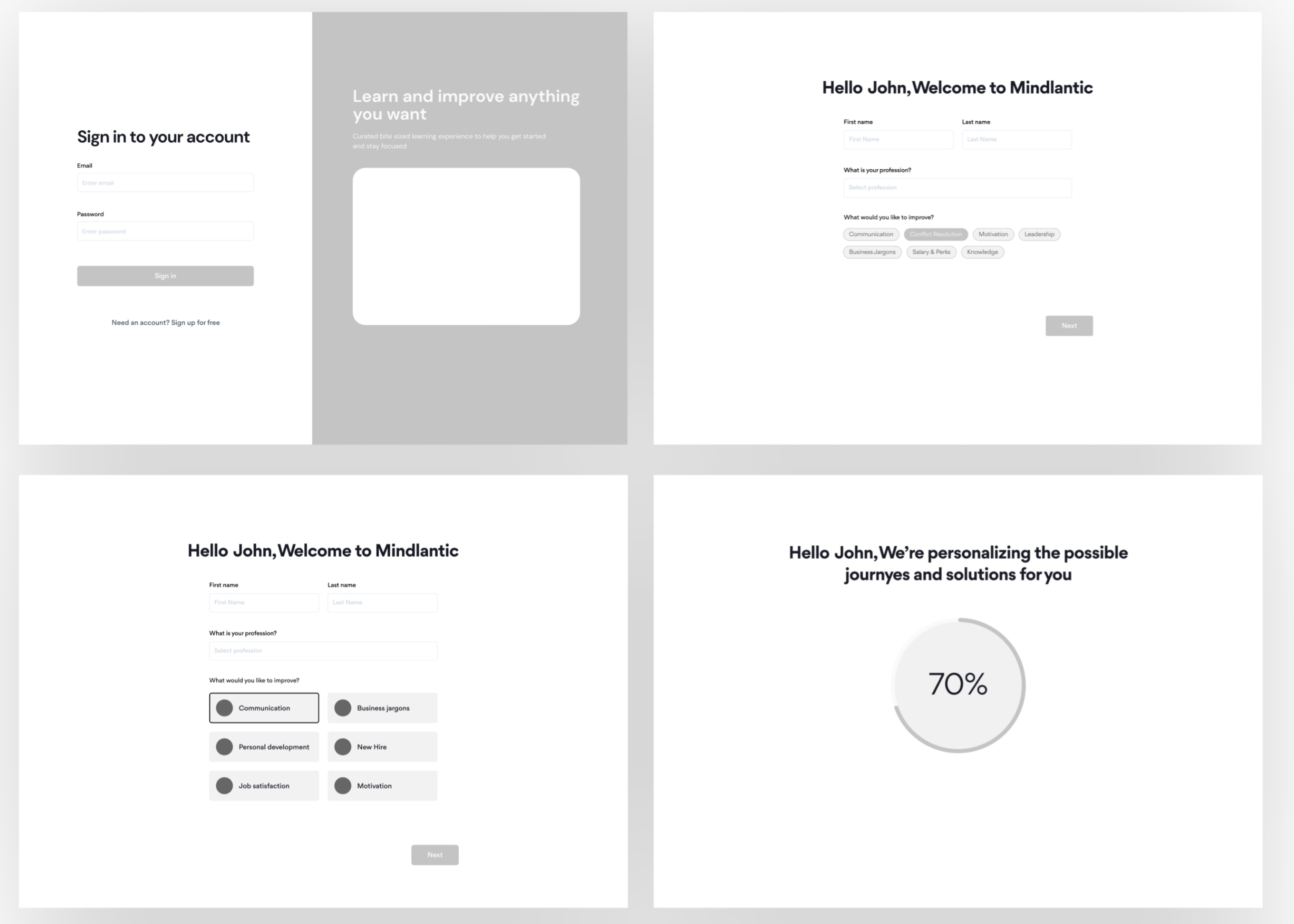 User flows were simplified to remove unnecessary steps and guide users directly from onboarding to learning content. The interface was structured into clear stages so users always know where they are and what to do next.