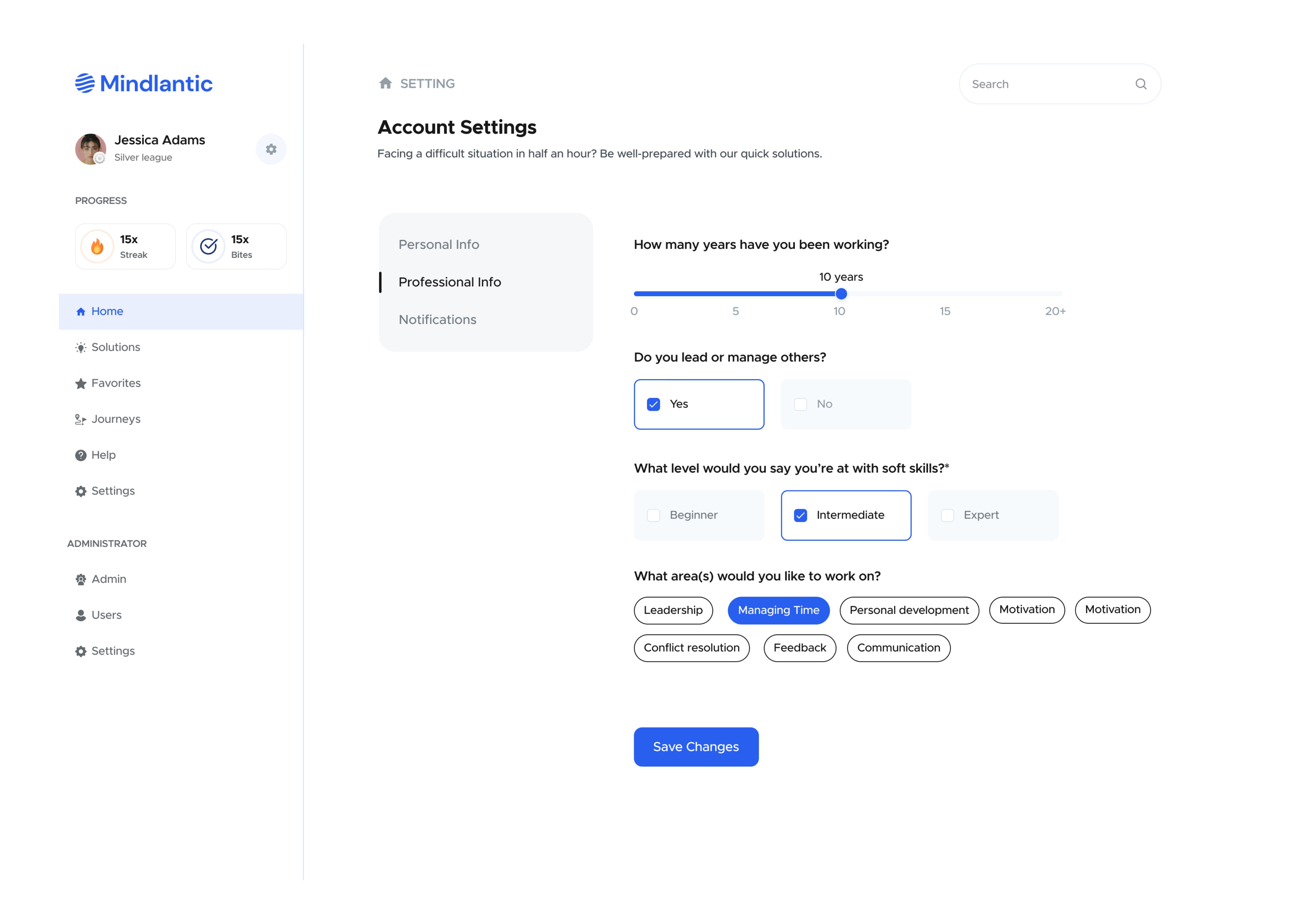 A solution to the soft skills development platform. Improve your soft skills with daily 5 minutes learning bites.